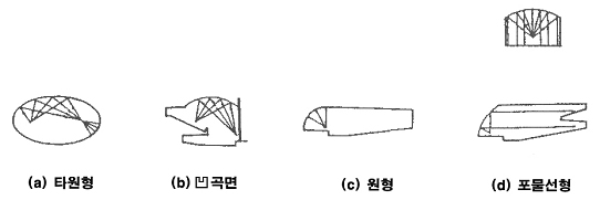 실내벽의 일부 또는 전부에 凹곡면은 음향모임 효과에 의해 반드시 실내에 음장의 불균일이 발생한다.